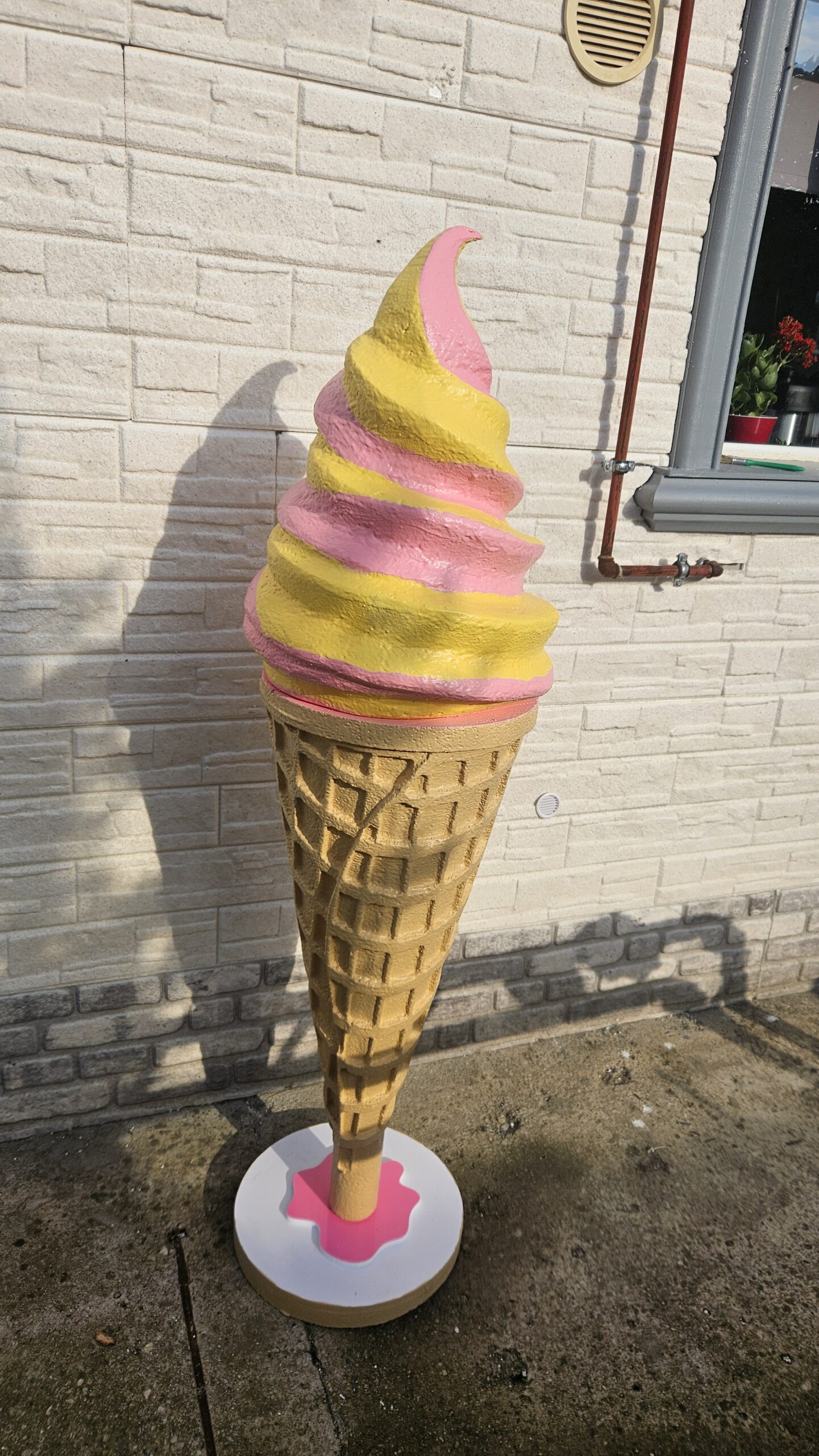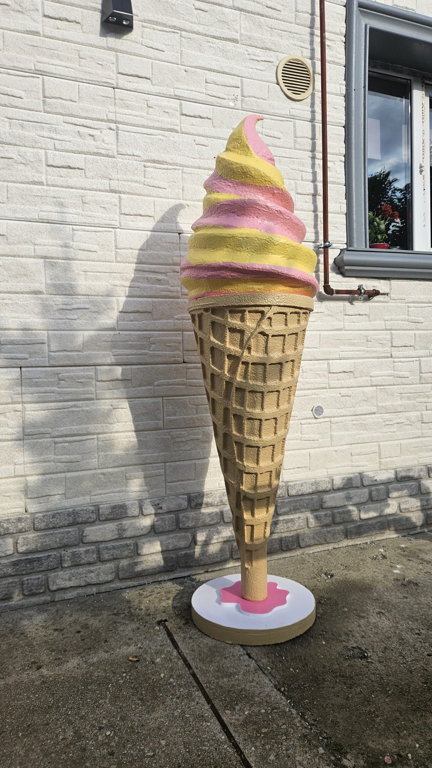 – Cornetul si crema sunt acoperite cu rasina acrilica si vopsite.